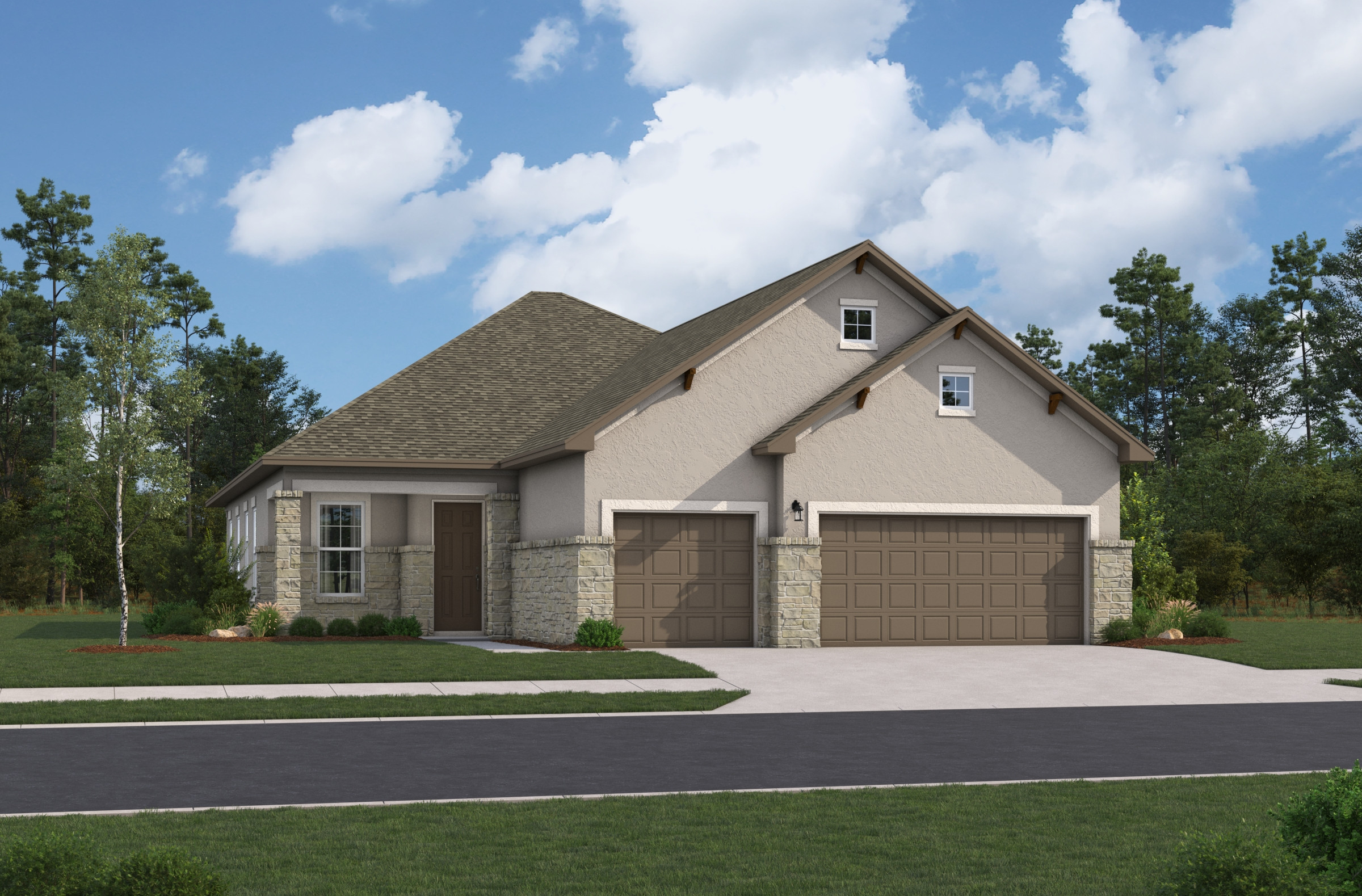 The Live Oak is a thoughtfully arranged one-story single-family home that encourages connection and flow. The great room seamlessly transitions into the dining area and kitchen, making it ideal for gatherings or everyday moments. The primary bedroom, tucked at the rear of the home, offers peaceful views and abundant natural light, creating a serene retreat.