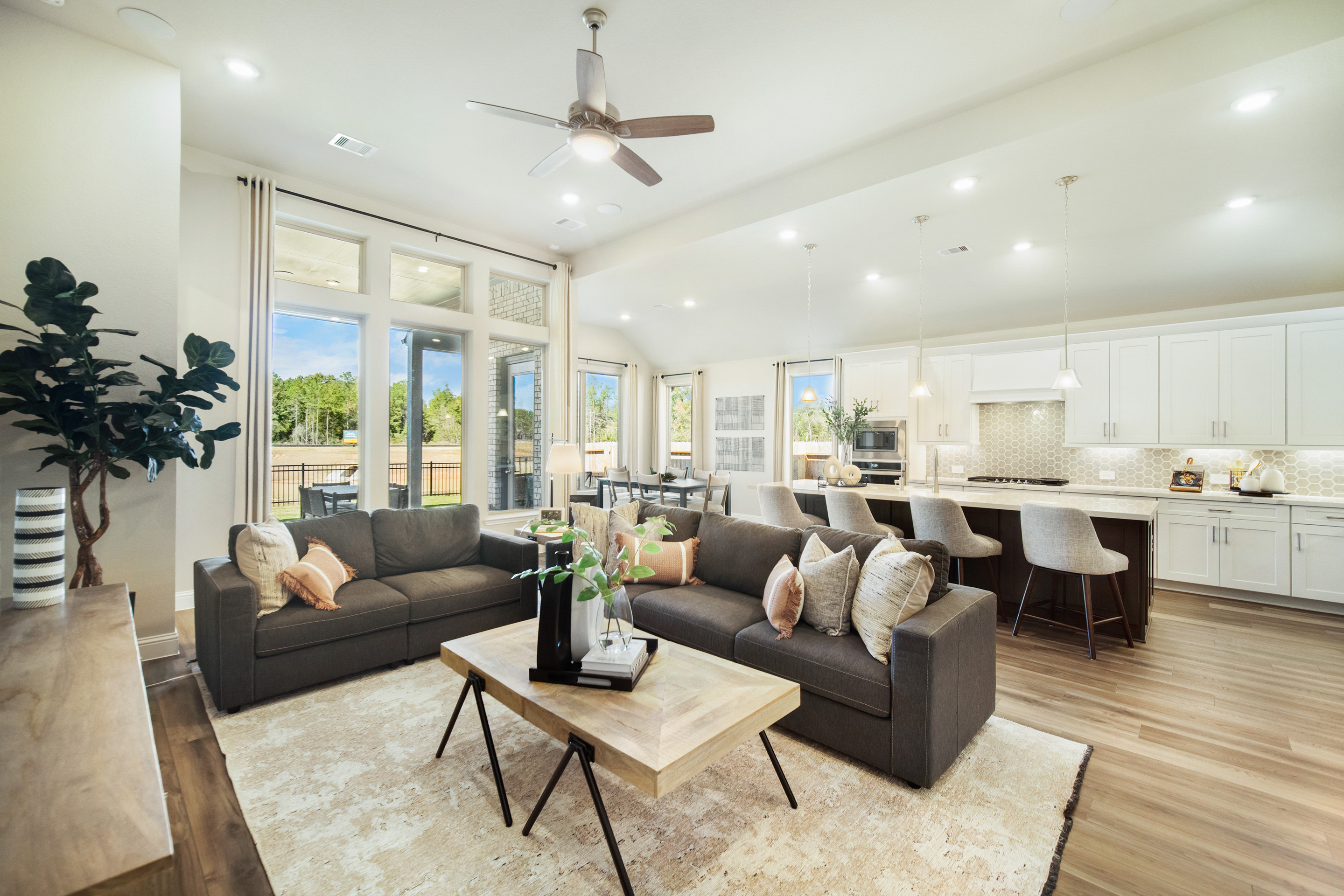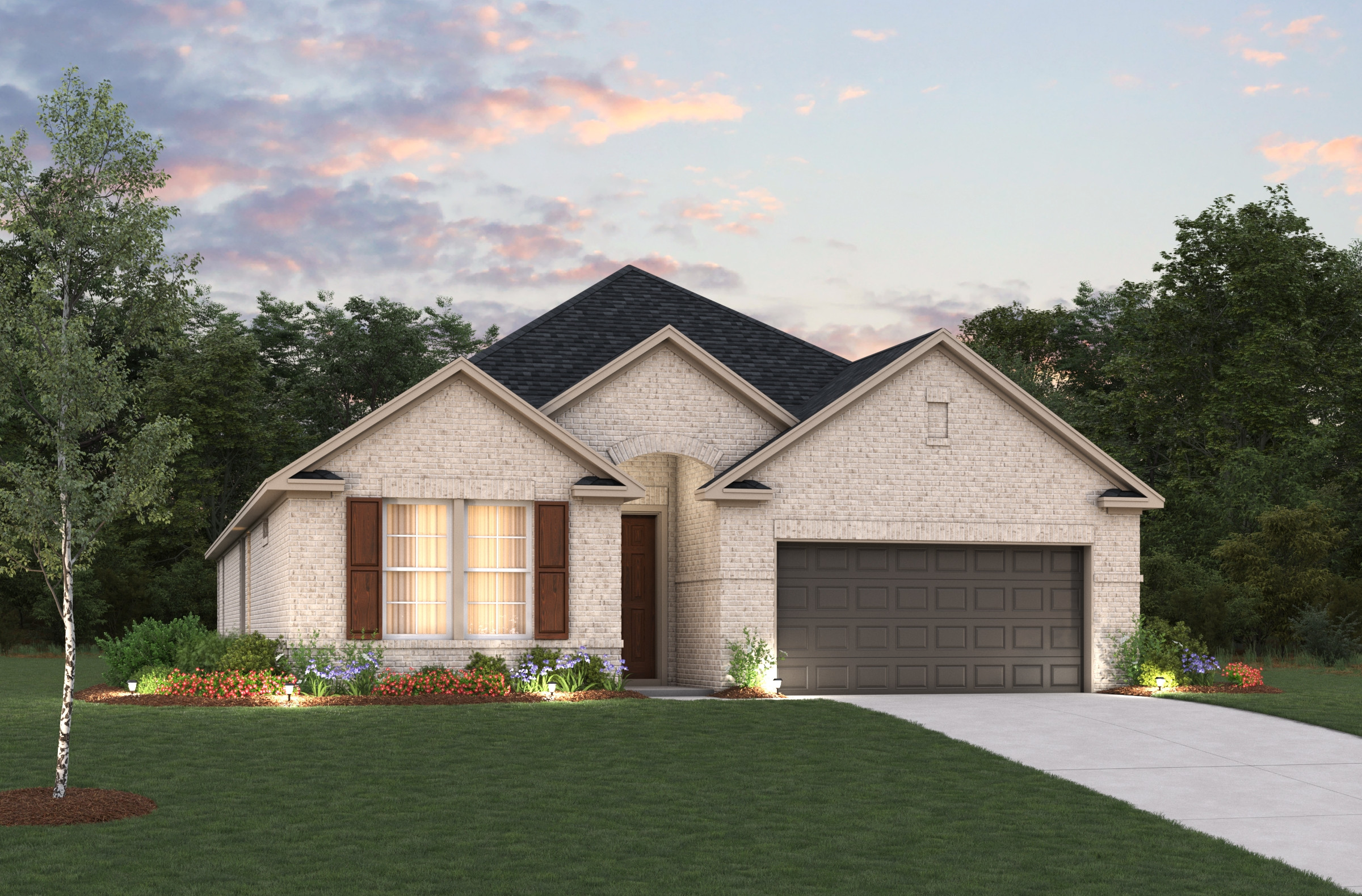 The McKinney Plan is a beautifully designed single-story home that blends style, comfort, and modern functionality. The great room impresses with soaring 12' ceilings, creating an open, airy space perfect for entertaining or relaxing with family. A private study offers a quiet space for work or reading, while the 3-car tandem attached garage provides convenience and ample storage, making this home as practical as it is inviting.